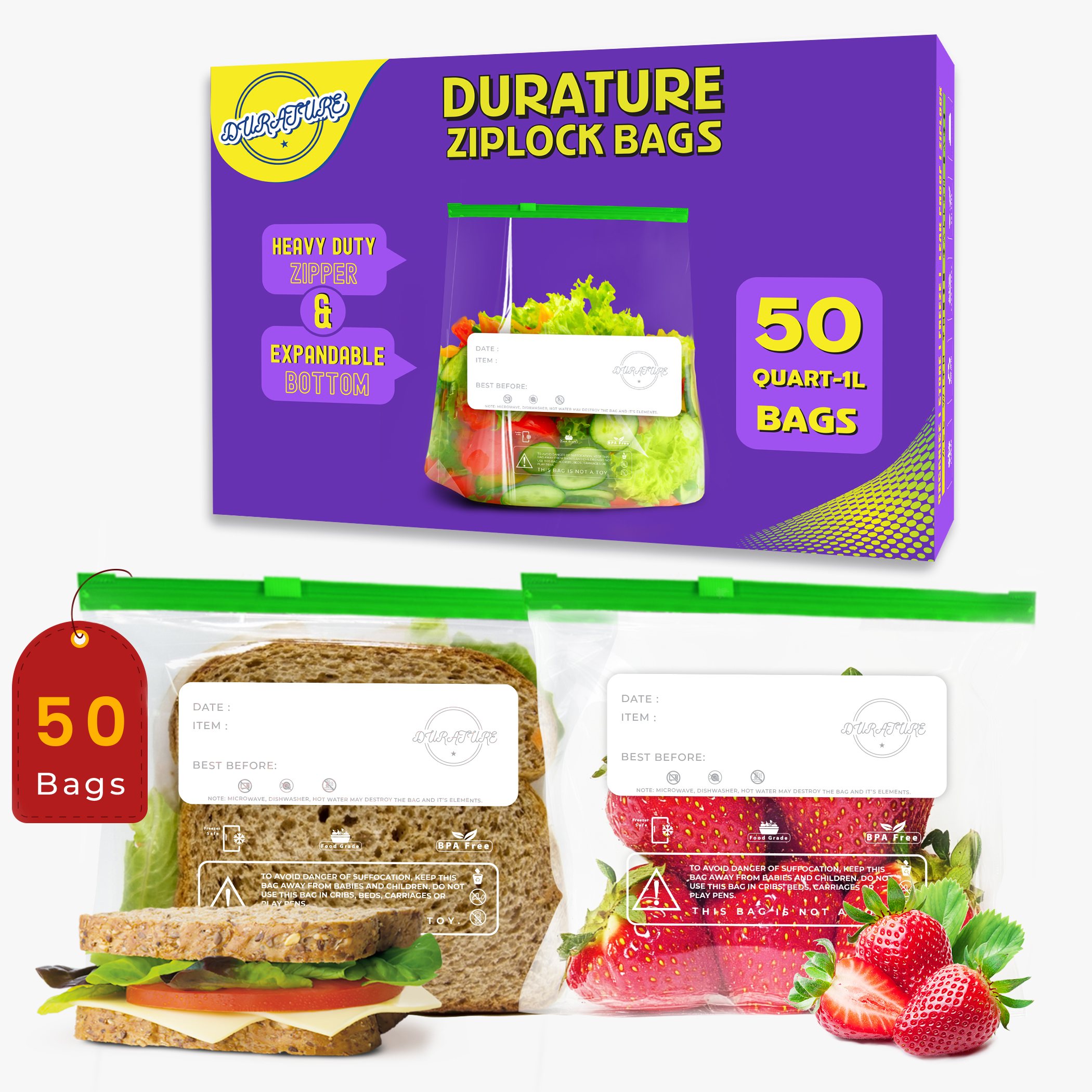 DURATURE Quart Ziplock Food Bags (1L) – 50 Pcs